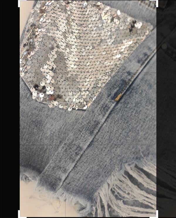 Short jeans blu chiaro tasca post. Paillettes