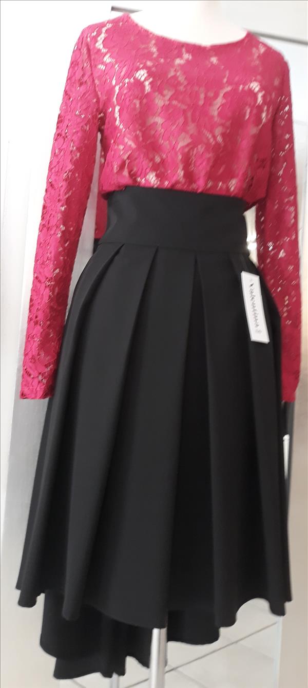 Gonna svasata a pieghe più lunga dietro col. Nero